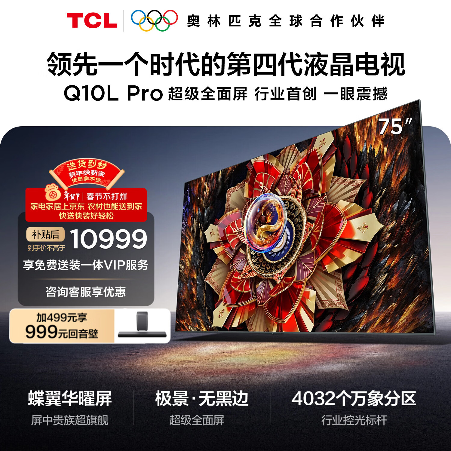 自营TCL电视 75Q10L Pro 75英寸 极景QD-Mini LED 蝶翼华曜屏 万象分区 绚彩XDR 国家补贴 护眼