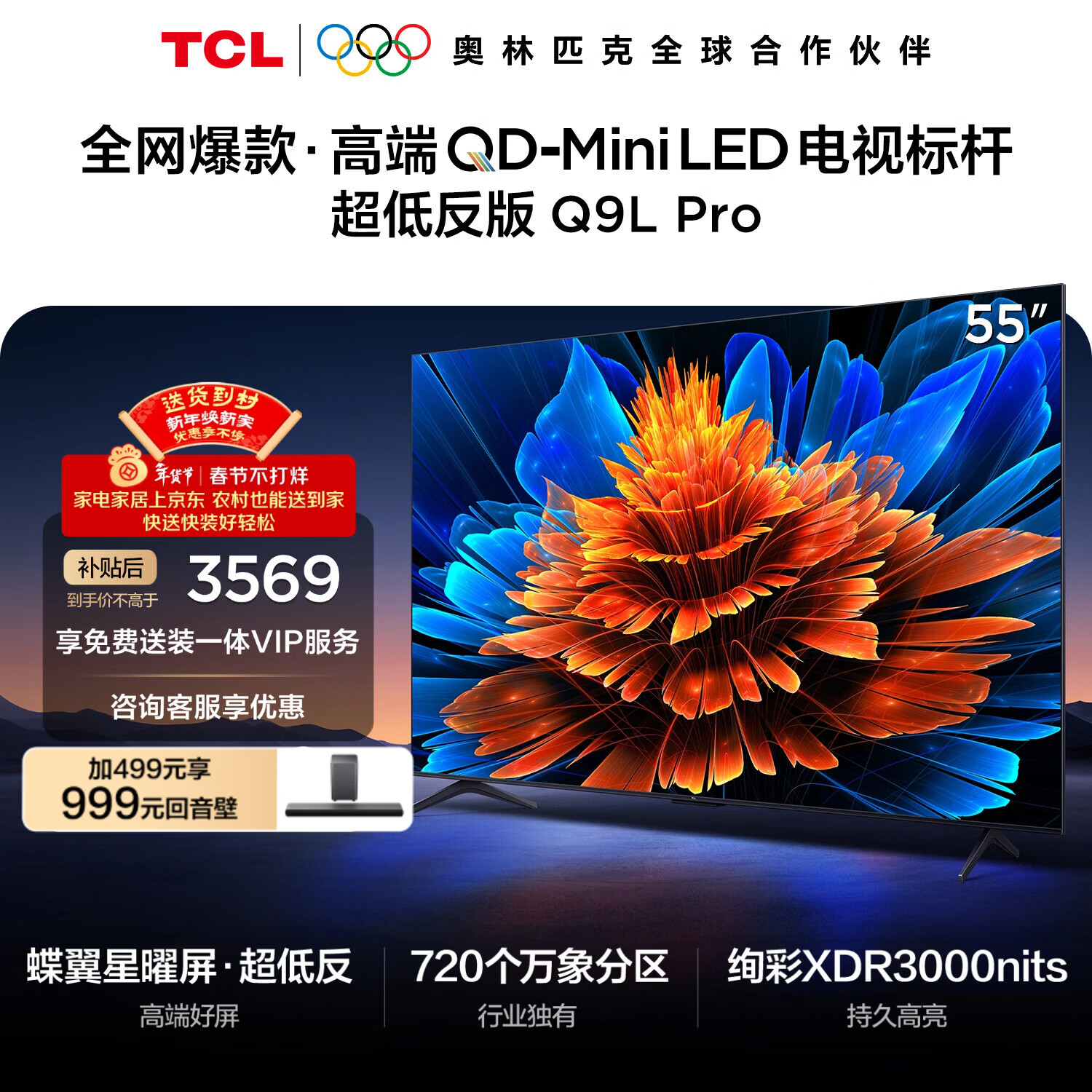 自营TCL电视 55Q9L Pro 55英寸 QD-Mini LED 蝶翼星曜屏 万象分区 绚彩XDR 超薄 国家补贴