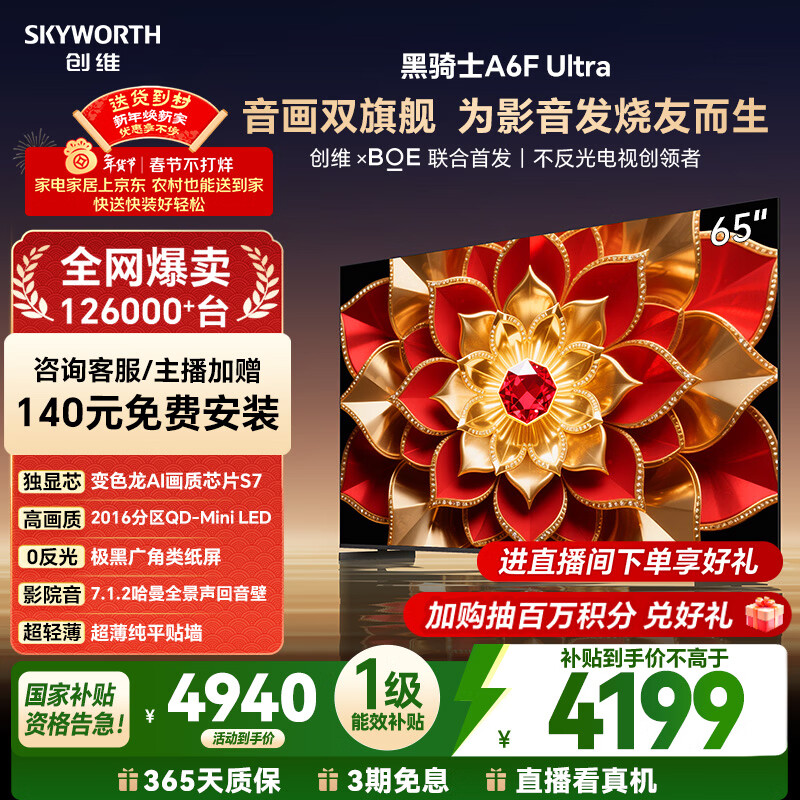 自营创维电视A6F Ultra 65英寸 2016分区QD-Mini LED 哈曼回音壁 国家补贴 A6F Pro+