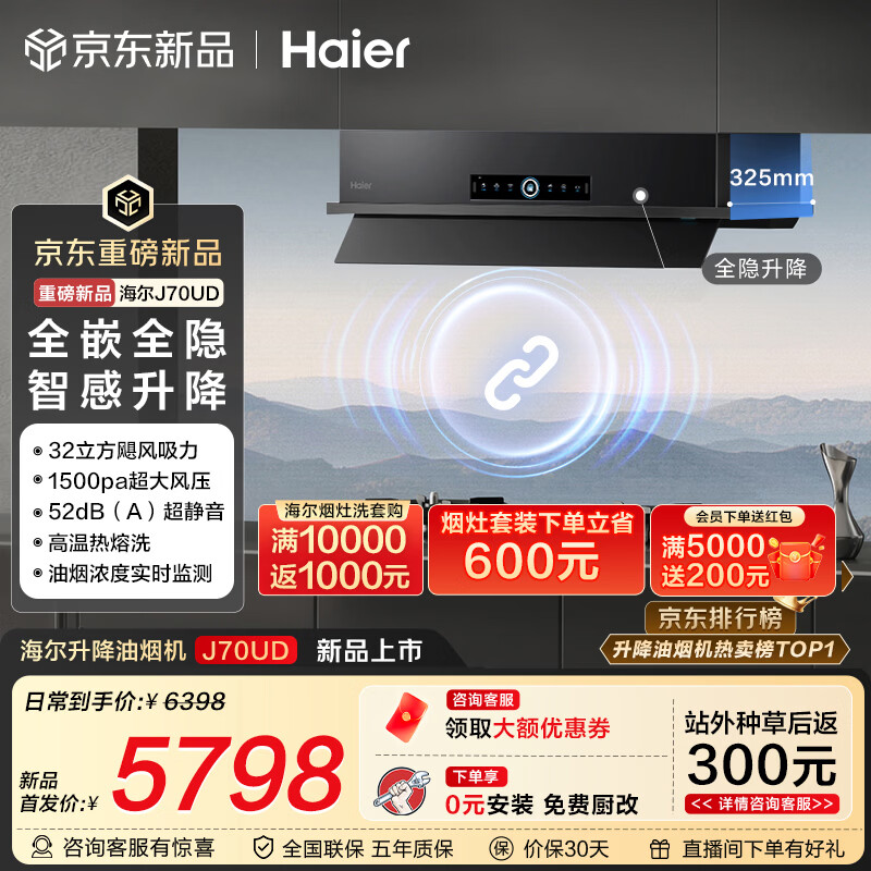 自营海尔抽吸排油烟机SeeKer 全嵌升降家用32大吸力热熔洗 上门安装以旧换新 搭配防干烧定时烟灶联动套装