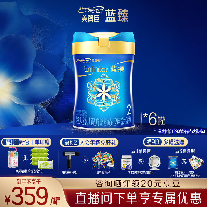 旗舰店美赞臣蓝臻2段奶粉 较大婴儿配方牛奶粉(6-12月)820g乳铁蛋白 新国标 2段 820g 6罐 (咨询入会享多重礼)