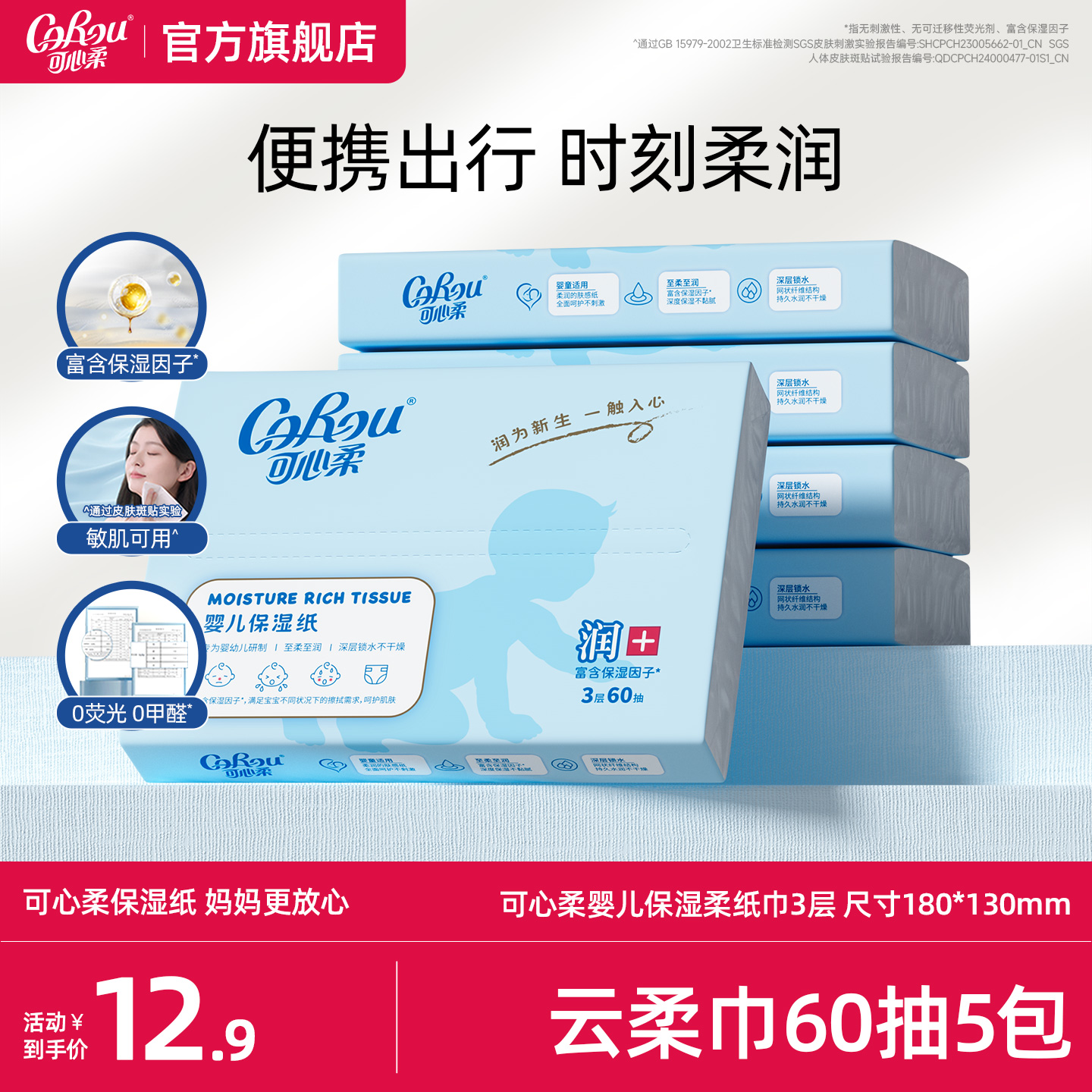 旗舰店【小样】可心柔V9婴儿柔纸巾宝宝专用保湿乳霜纸母婴云柔巾60抽5包