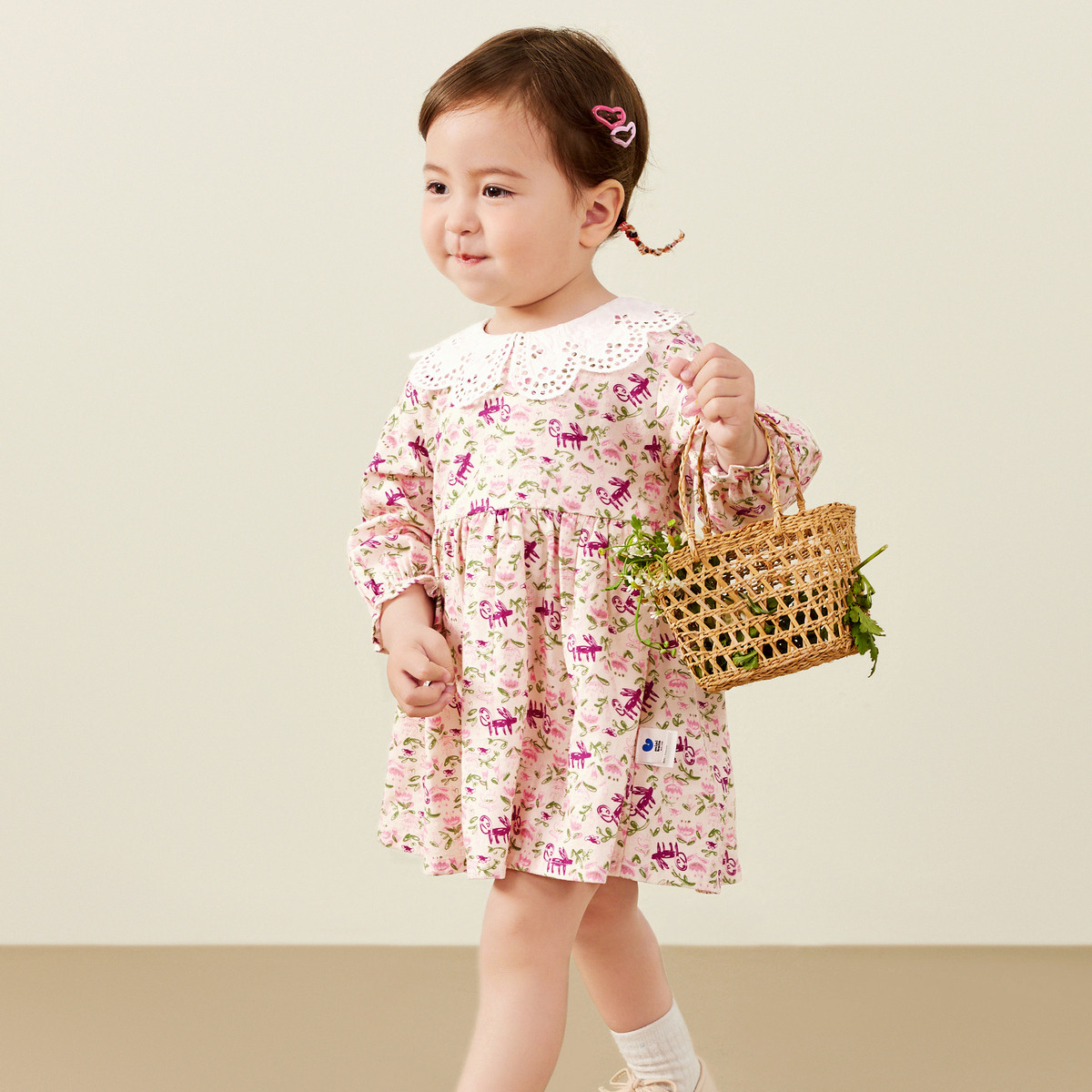 Mini Bala 【花瓣领甜美女童连衣裙】迷你巴拉女童秋裙子宝宝纯棉公主裙