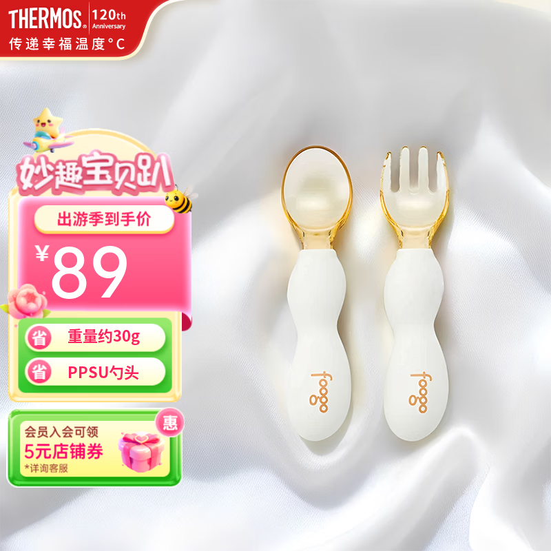 旗舰店膳魔师儿童餐具叉勺316L不锈钢叉子勺子套装宝宝辅食工具带收纳盒 TCAH 糯糯白-PPSU叉勺套组(含收纳盒)