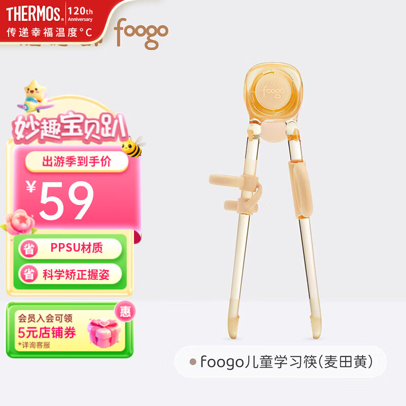 旗舰店膳魔师(THERMOS)foogo儿童学习筷子辅助器宝宝专用筷子学习训练筷小孩辅食餐具 儿童学习筷