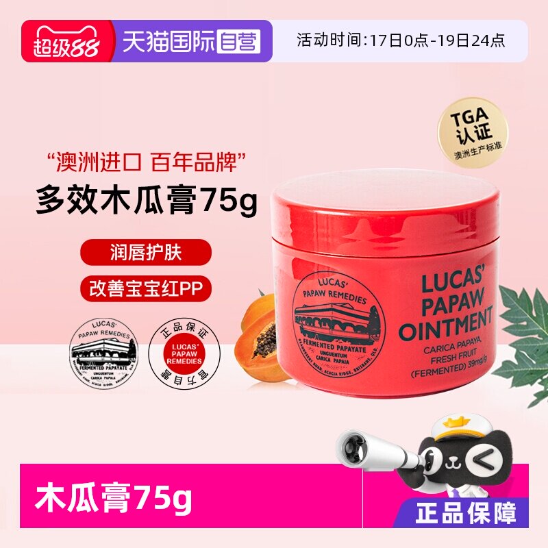自营【自营】lucas木瓜膏75g澳洲原装正品润唇膏唇膜婴儿专用护臀膏