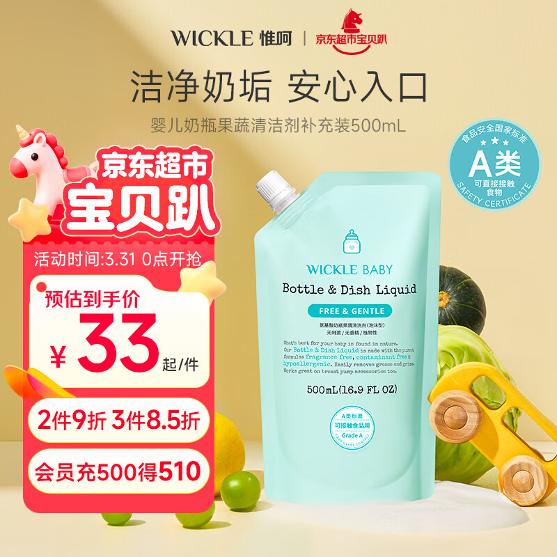 自营WICKLE奶瓶果蔬清洁剂洗洁精补充装500ml【不含起泡器】