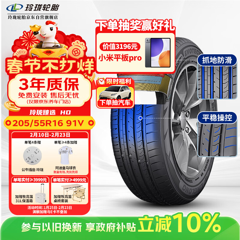 自营玲珑轮胎汽车轮胎205/55R16 91V 玲珑臻选HD 适配朗逸/英朗/宝来/速腾