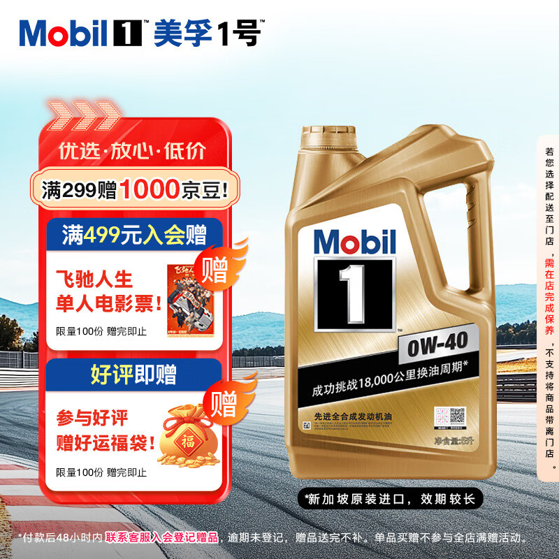 自营美孚(Mobil)美孚1号金美孚 全合成汽机油 0W-40 1L*5/5L 汽车保养