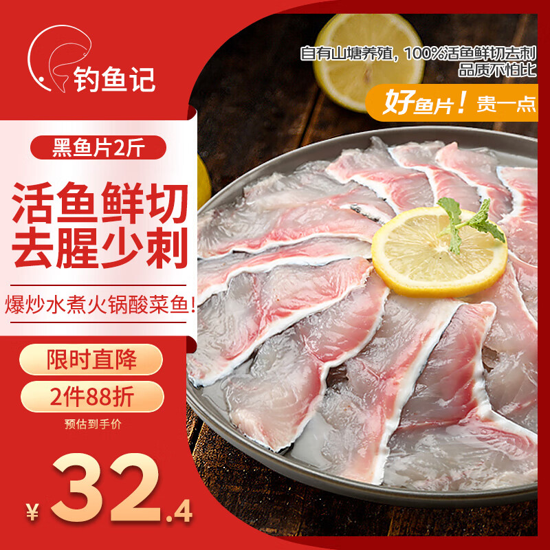自营钓鱼记免浆黑鱼片2斤 (4袋*250g) 生鱼片酸菜冷冻火锅食材 生鲜