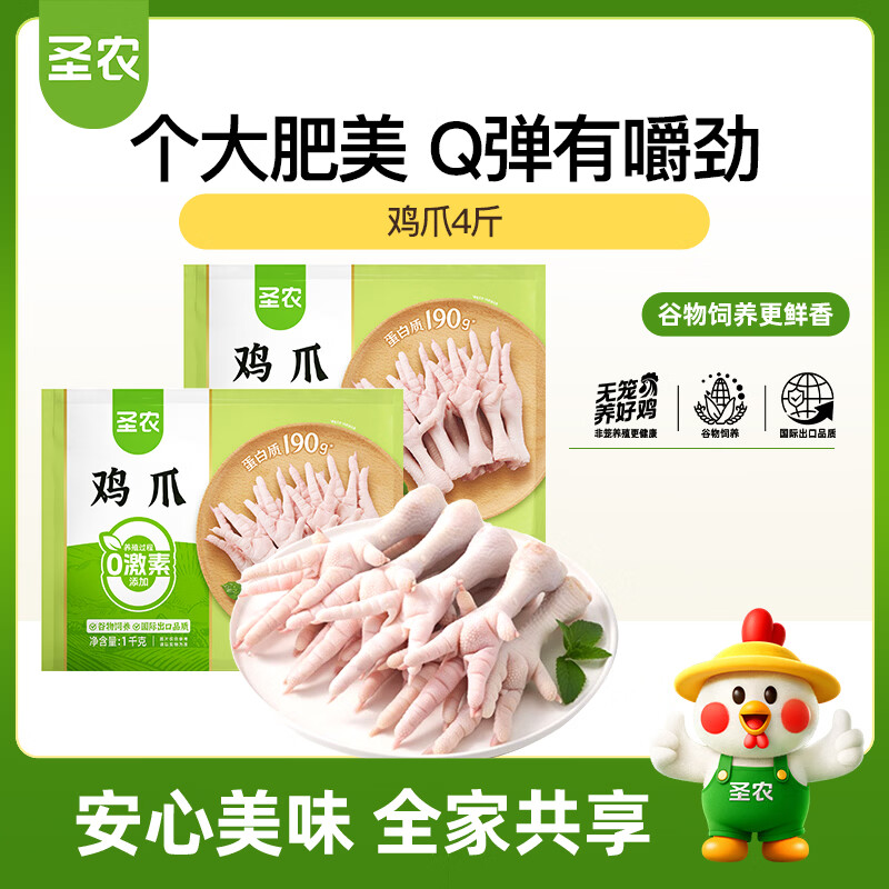 自营圣农鸡长爪4斤 冷冻鸡爪 凤爪泡椒鸡爪 纯原料鸡爪原色无泡发源头直发