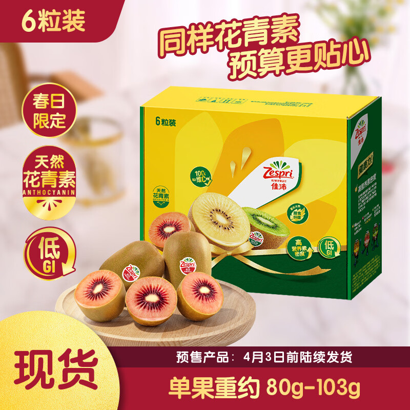 自营佳沛(zespri)新西兰 新果季空运 宝石红奇异果6粒单果约80-103g 红心猕猴桃