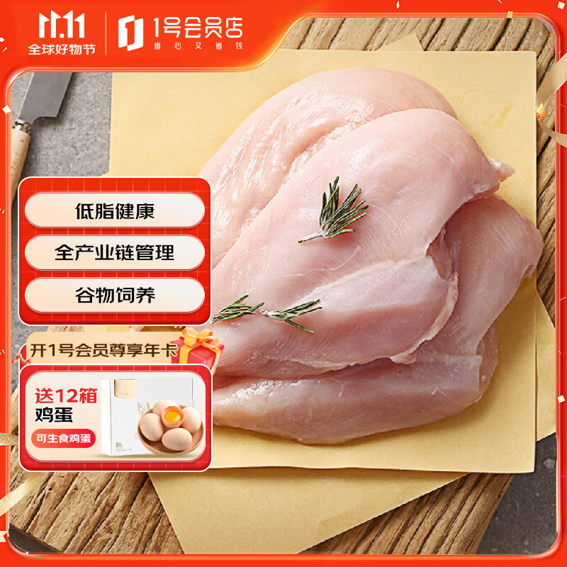 1号会员店 单冻鸡大胸 出口级食材 鸡肉鸡胸肉健身鸡胸肉鸡里脊烧烤 2斤