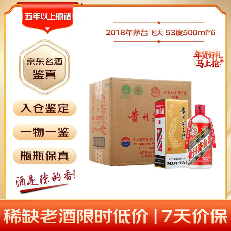 自营茅台 2018年 飞天 酱香型白酒 53度 500ml*6 整箱装(原箱原封)陈年老酒 礼赠宴请收藏【名酒鉴真】
