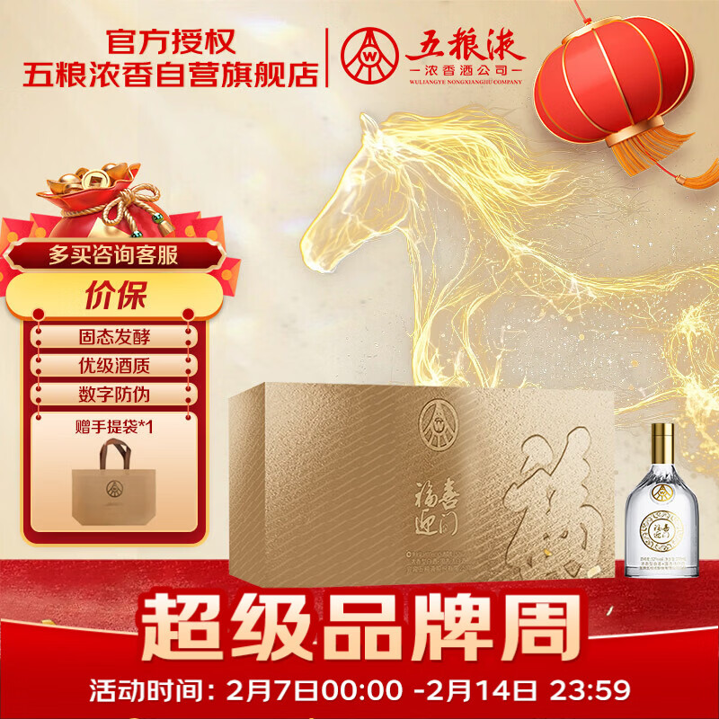 自营五粮液股份出品 福喜迎门 小金条礼盒 浓香型白酒 52度100mL*5瓶 年货
