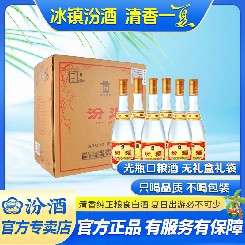 汾酒官方【原箱6瓶】53度黄盖玻汾清香特级纯正粮食白酒53度475ml