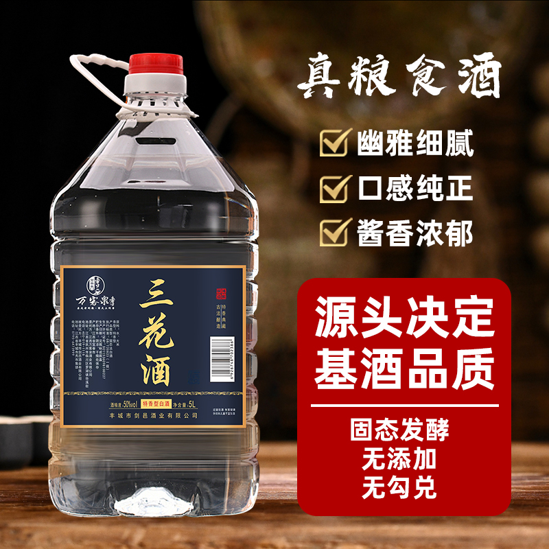 万客泉三花酒50度特香型白酒纯粮食酒5L桶装酒散装酒50度5000ml