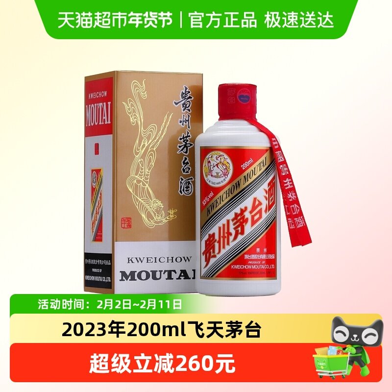 2023年贵州茅台飞天茅台53度200ml酱香白酒单瓶装H