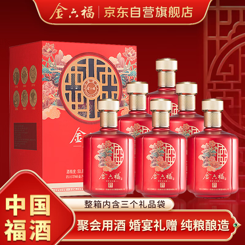 自营金六福 窖陈玖号 兼香型白酒 50.8度 500ml*6瓶 整箱装 喜宴年货送礼