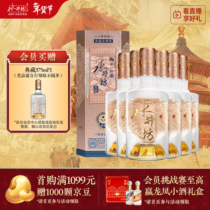 自营水井坊 典藏大师版(金狮装)52度 500ml*6瓶 整箱装