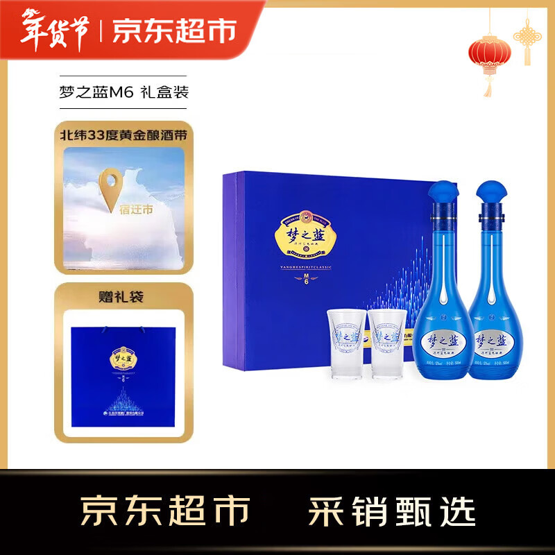 自营洋河 梦之蓝M6 52度 500ml*2瓶 礼盒装白酒(年份随机)