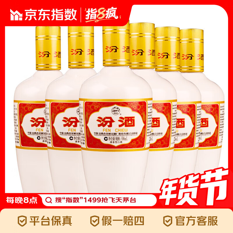 汾酒 出口白瓷 清香型白酒 53度 500ml*6瓶 指数 53度 500mL 6瓶