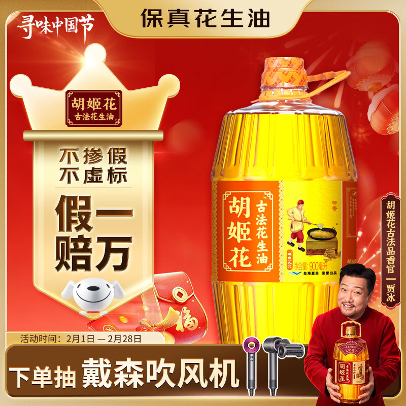 自营胡姬花 食用油【保真花生油】压榨一级古法花生油900ML(新老包装随机发)