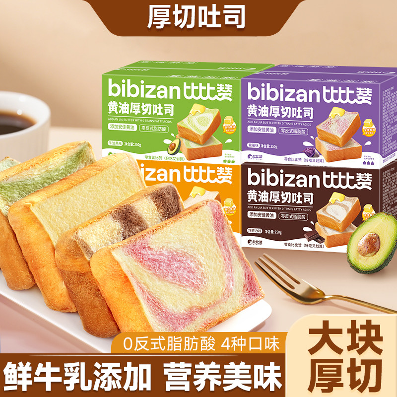 旗舰店比比赞黄油厚切吐司手撕面包早餐整箱代餐解馋小零食小吃休闲食品