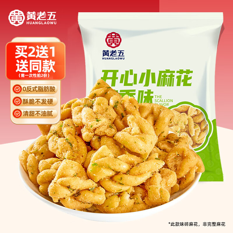 旗舰店黄老五麻花碎560g 手工小麻花碎充饥小零食休闲零食品糕点四川特产 【拍2送1】葱香味碎麻花560g