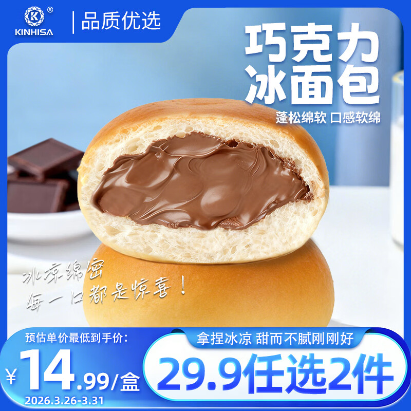 自营KINHISA爆浆夹心巧克力冰面包早餐代餐糕点心甜品宿舍零食下午茶80g*4枚