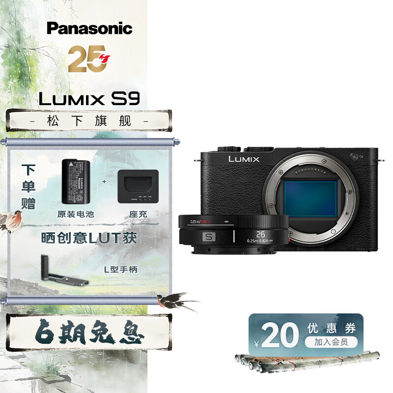 旗舰店松下S9相机 单机/套装 全画幅数码相机/入门级微单 L卡口 国行正品 2420万像素 旅行学生用机 轻巧便携 S9黑色丨26mm(手动对焦丨定焦镜头)