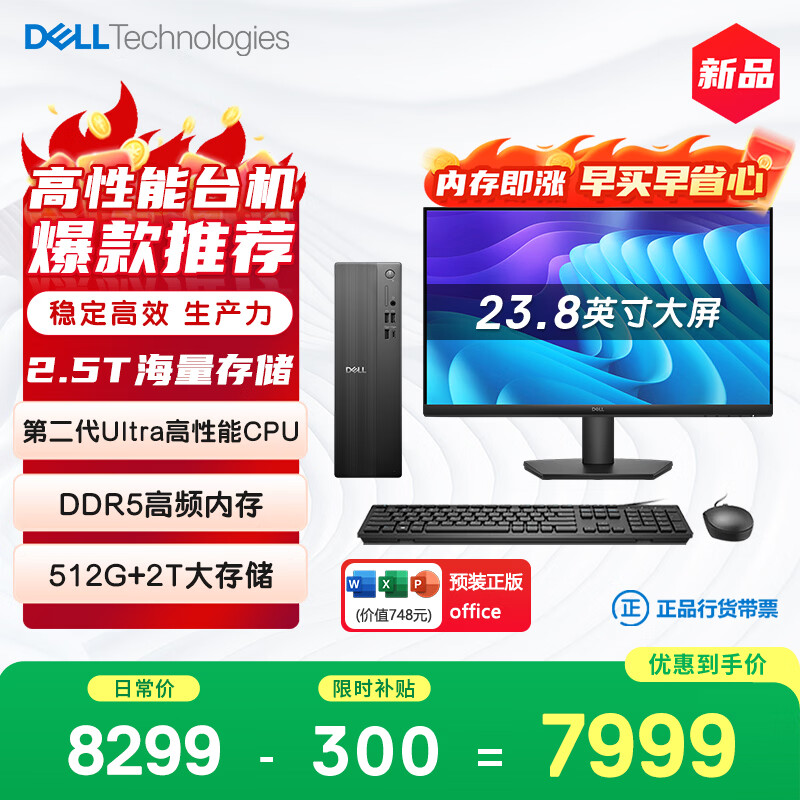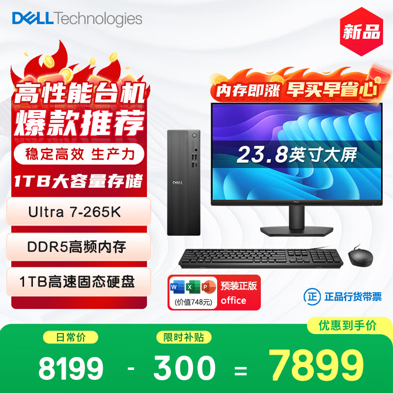 自营戴尔成就 新款 高性能Ultra台式电脑(Ultra 7-265K 32G D5 512G+2T大存储)23.8大屏 商用办公openclaw