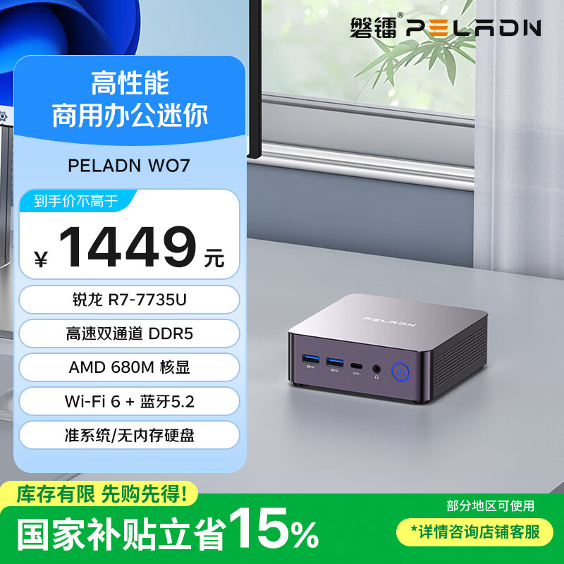 自营磐镭(PELADN)迷你主机 AMD锐龙R7 7735U八核游戏办公剪辑Mini台式机电脑整机(R7 7735U/无内存硬盘)