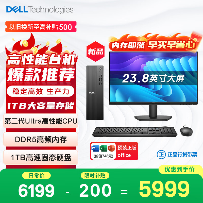 自营戴尔成就 新款 高性能Ultra台式电脑(Ultra 5-225 16G DDR5高速内存 1TB)23.8大屏 商用办公学习机