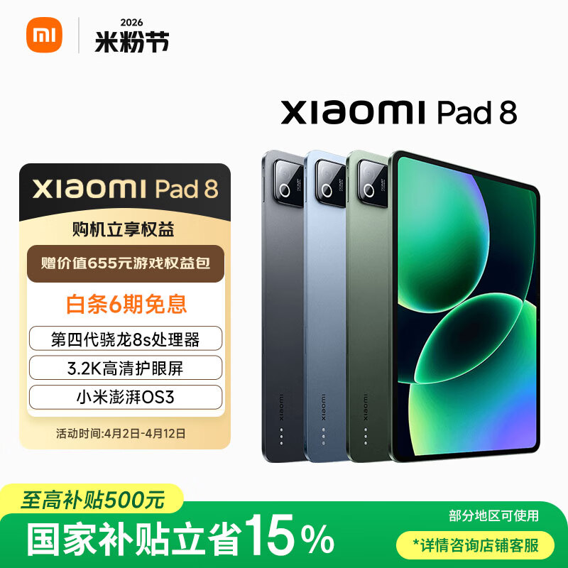 自营小米(MI) 小米平板8【国家补贴】11.2英寸 3.2K 超清护眼屏 第四代骁龙8s 澎湃OS3 8+128G 黑色