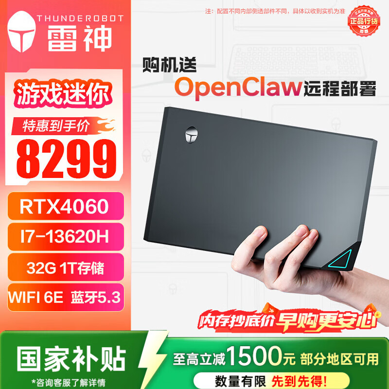 自营雷神(ThundeRobot)MIX 高性能游戏电竞迷你台式电脑mini主机(13代i7-13620H RTX4060 32G 1T )三角洲国补openclaw