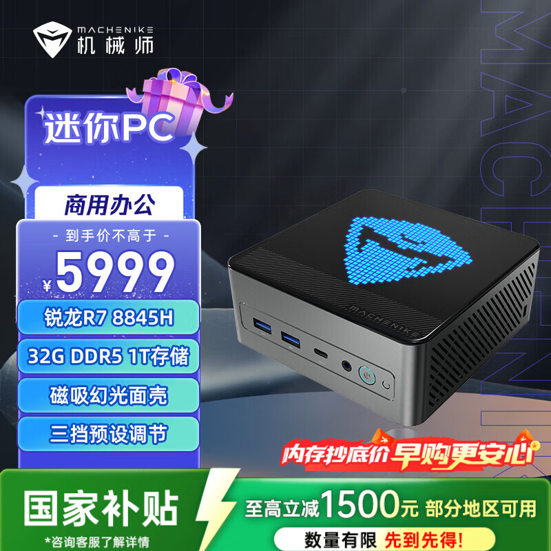 自营机械师(MACHENIKE)GTX AMD高性能办公游戏小主机mini电脑商用迷你主机(R7-8845HS 32GD5 1TSSD WIFI6 )国家补贴
