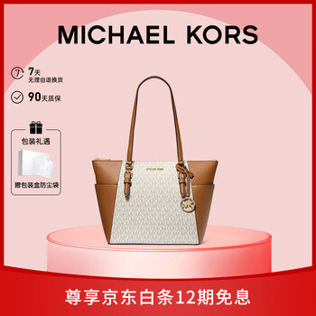 自营MICHAEL KORS礼物MK女包CHARLOTTE老花单肩手提包托特包 大号 香草白/棕
