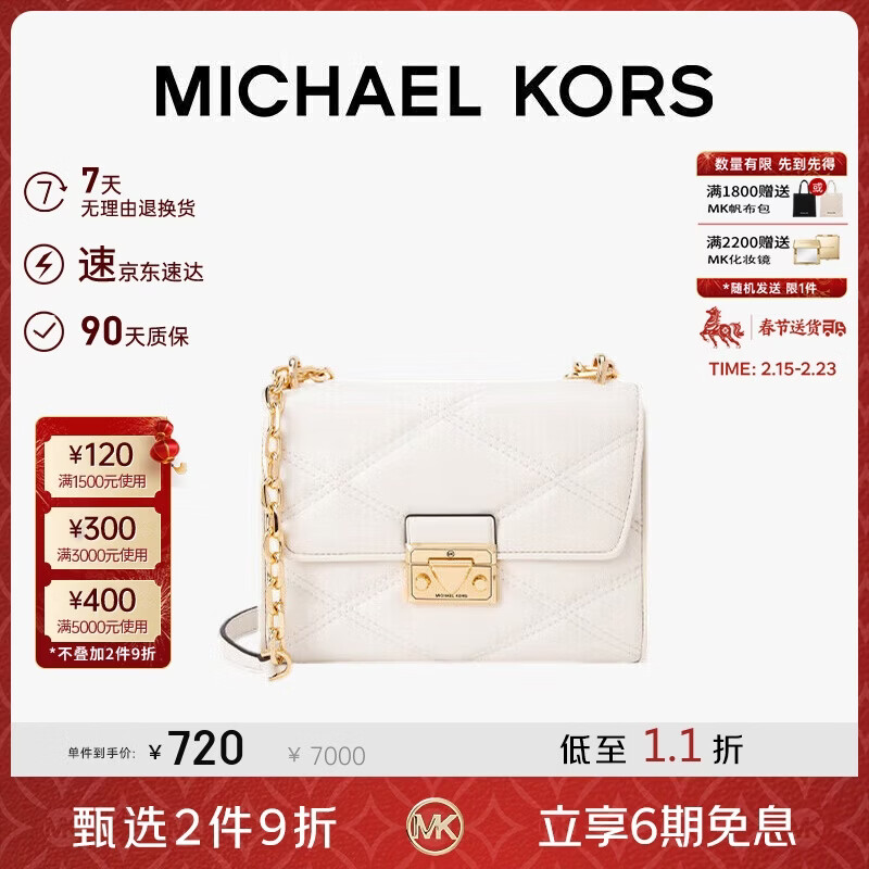 自营MICHAEL KORS情人节轻奢MK女包SERENA链条菱格单肩斜挎包 中号 白色