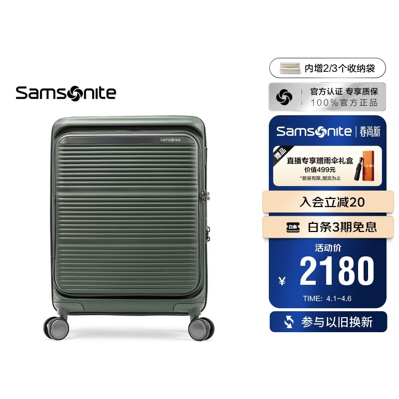 自营新秀丽(Samsonite)行李箱20英寸前开口拉杆箱PARALUX双开门旅行箱包KT2橄榄绿登机箱