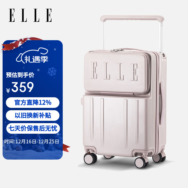 自营ELLE前开口20英寸行李箱宽拉杆大容量旅行拉链箱时尚密码箱登机箱粉色