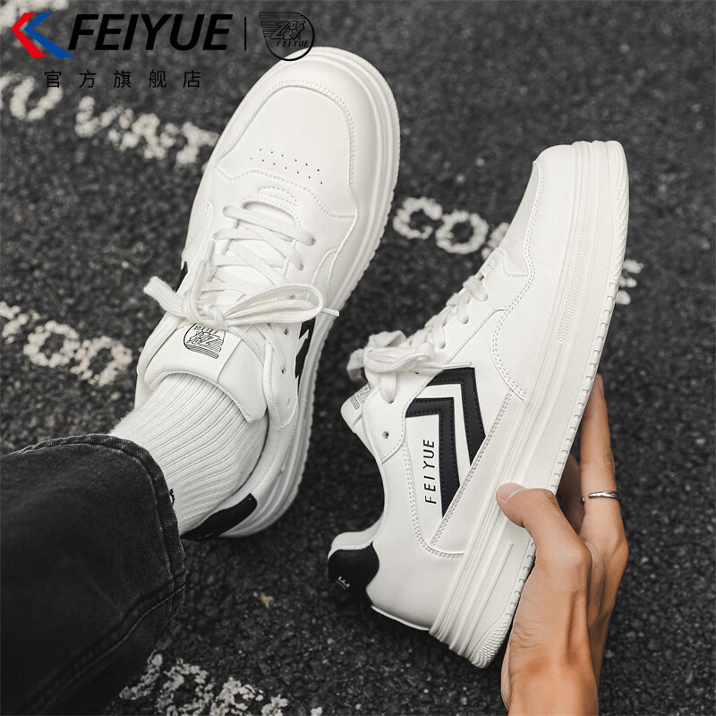 旗舰店飞跃(Feiyue)官方男鞋板鞋男时尚百搭舒适潮流运动休闲鞋男轻便鞋子男 白黑色 40