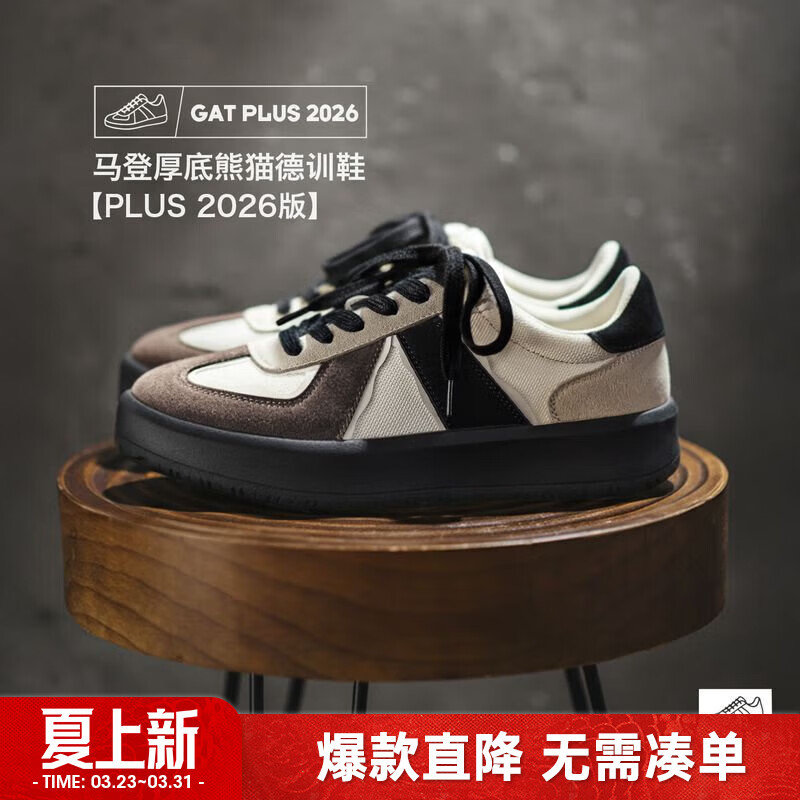 旗舰店马登熊猫德训鞋男2026春季新款阿甘鞋厚底增高运动休闲百搭板鞋子男款 黑色 【休闲男鞋/男士板鞋/平底防滑鞋/百搭休闲鞋】 40 男码