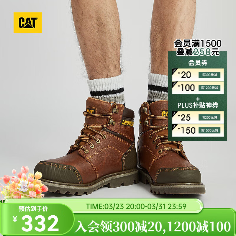 旗舰店卡特(CAT)工装靴马丁靴男鞋男士休闲工鞋经典牛皮面防滑工装靴 棕红 40