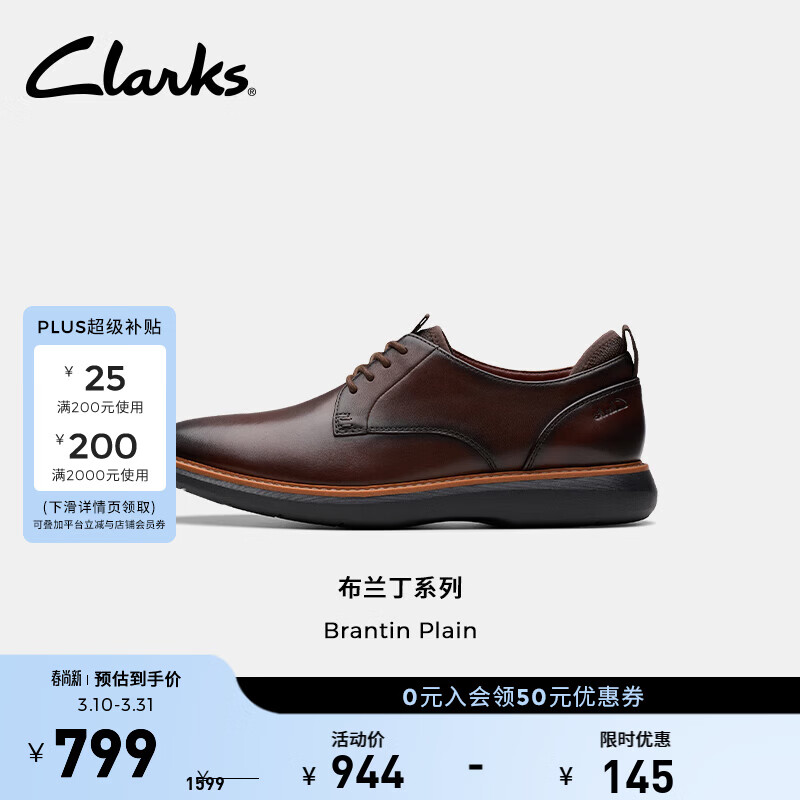 旗舰店Clarks其乐布兰丁系列男鞋轻盈缓震商务正装皮鞋经典复古德比鞋 深棕色 261793837 42
