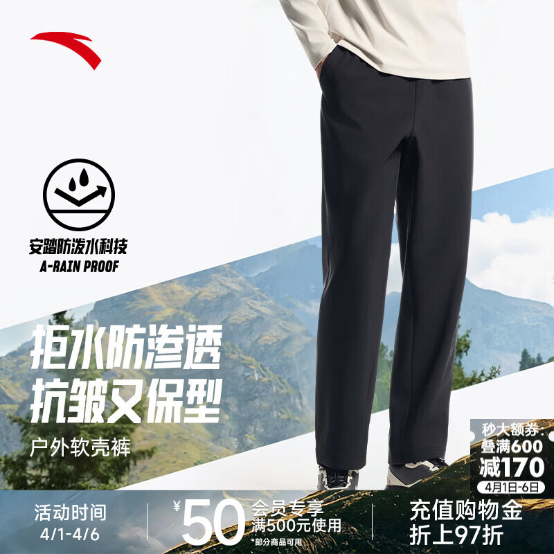 旗舰店安踏(ANTA)软壳裤男士夏季户外耐磨防泼水防风徒步运动休闲三合一冲锋长裤子 【防泼水-常规款】基础黑-6 XL
