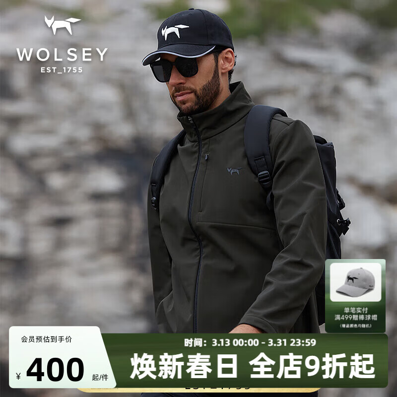 旗舰店WOLSEY尼维斯户外软壳衣男士防风加绒立领外套可做冲锋衣内胆使用 松香绿 3XL 190