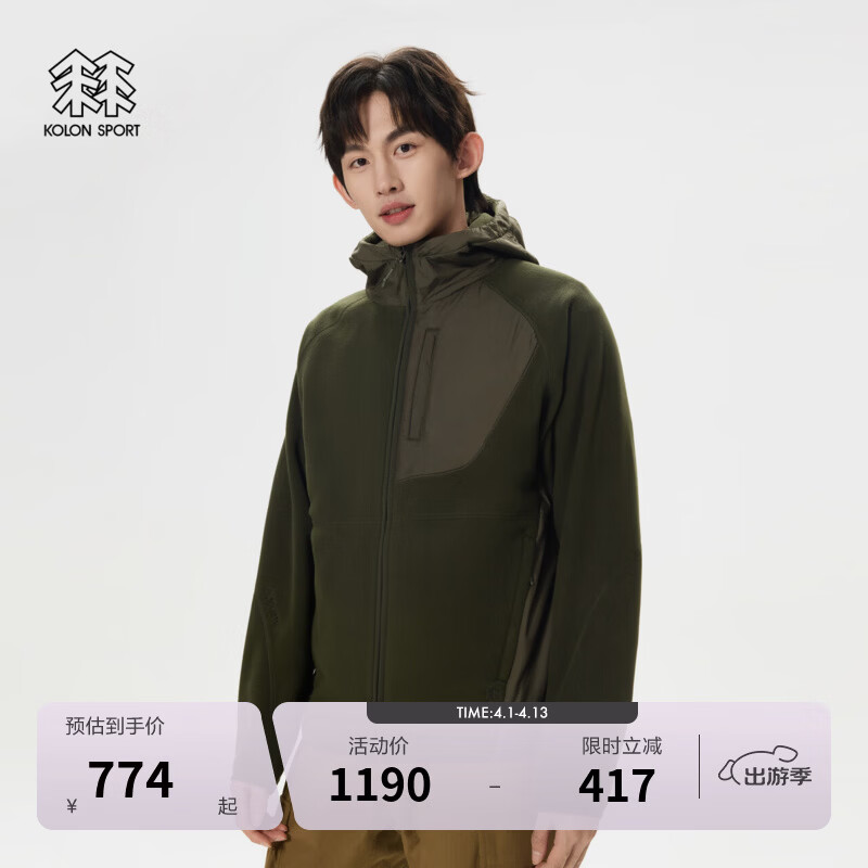 旗舰店KOLON SPORT/可隆抓绒夹克 男子户外露营秋冬保暖轻便宽松连帽梭织外套 LHFJ4WTK35-KK 卡其色 M 170/92A