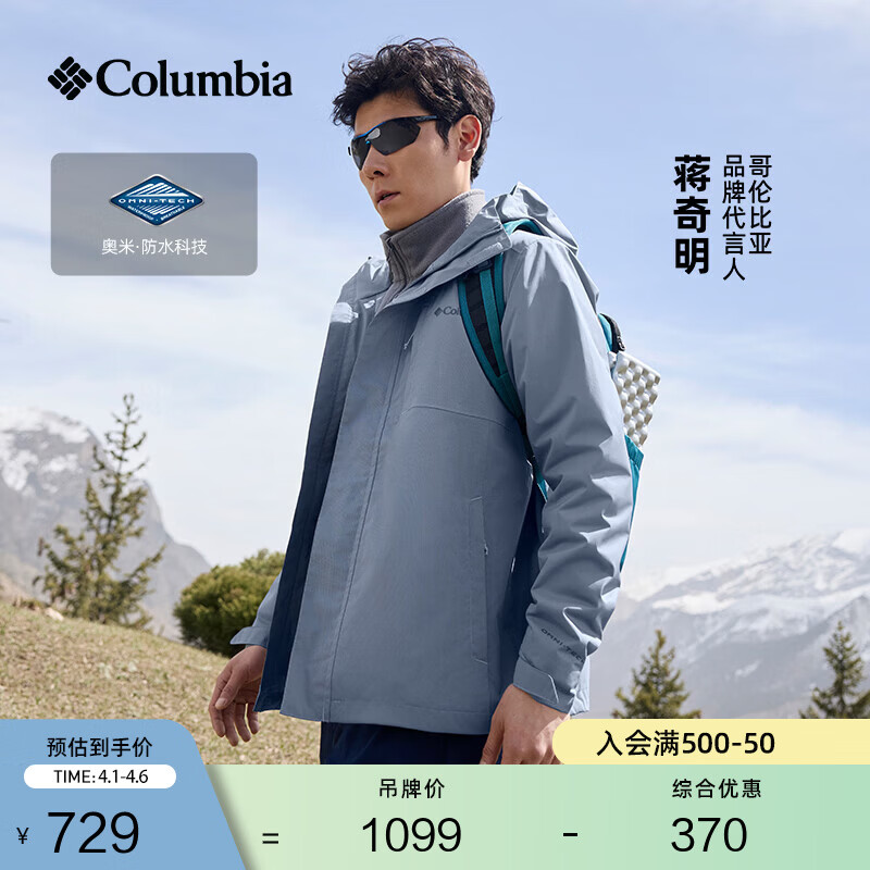 旗舰店Columbia【蒋奇明同款】哥伦比亚户外情侣防水冲锋衣徒步外套XE5743 032 花青灰 S(170/92A)