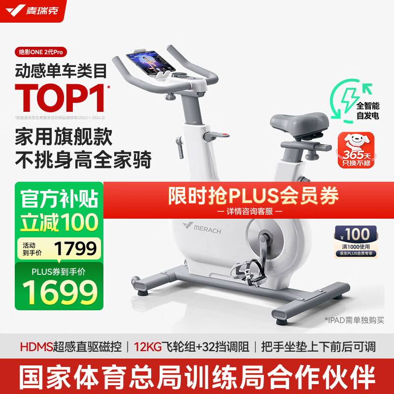 自营麦瑞克(MERACH)动感单车家用智能自发电健身器材室内自行车绝影ONE2代 MR-S10W4